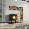 Ο στρογγυλεμένος σχεδιασμός της και το μεγάλο μπροστινό γυάλινο άνοιγμα αναδεικνύουν τη φλόγα, δημιουργώντας έντονη αίσθηση ζεστασιάς και θαλπωρής. Η ευρύχωρη εστία δέχεται μεγάλα κομμάτια ξύλου, προσφέροντας σταθερή και αποδοτική καύση.