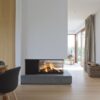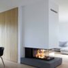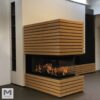 Τζάκι ενεργειακό τριών όψεων με συρόμενη πόρτα προς τα πάνω, εξαιρετικής ποιότητας και υψηλής αισθητικής, κατασκευασμένο από ατσάλι Corten 4 χιλ.