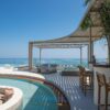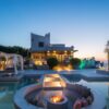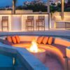 Στο συγκεκριμένο project έχει τοποθετηθεί στο κέντρο του καθιστικού και εντάσσεται αρμονικά στη διάταξη του χώρου. Η κυκλική μορφή του ακολουθεί τη στρογγυλή διάταξη των καναπέδων, δημιουργώντας ένα σαφές σημείο συγκέντρωσης. Η άμεση σχέση του με την πισίνα δημιουργεί μια ισορροπία ανάμεσα στο στοιχείο της φωτιάς και του νερού.