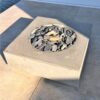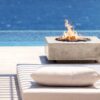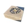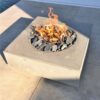 Τετράγωνο τζάκι εξωτερικού χώρου, custom κατασκευής, με minimal σχεδιασμό που ενσωματώνεται αρμονικά σε σύγχρονους υπαίθριους χώρους. Η γεωμετρική του μορφή συνδυάζει τετράγωνη εξωτερική βάση με κυκλική εστία στο κέντρο, δημιουργώντας μια ισορροπημένη και διαχρονική αισθητική.